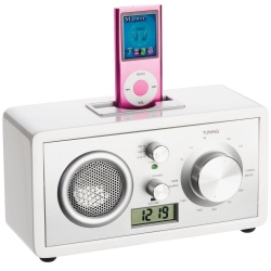 This powerful mono speaker provides rich and clear sound for home or office. Special docking station with retractable 3.5mm jack is compatible with all iPods & MP3 Players.