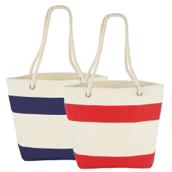 | Show your stripes with this sturdy nautical tote, perfect for the beach or getting around on the weekend. Open main compartment. | |