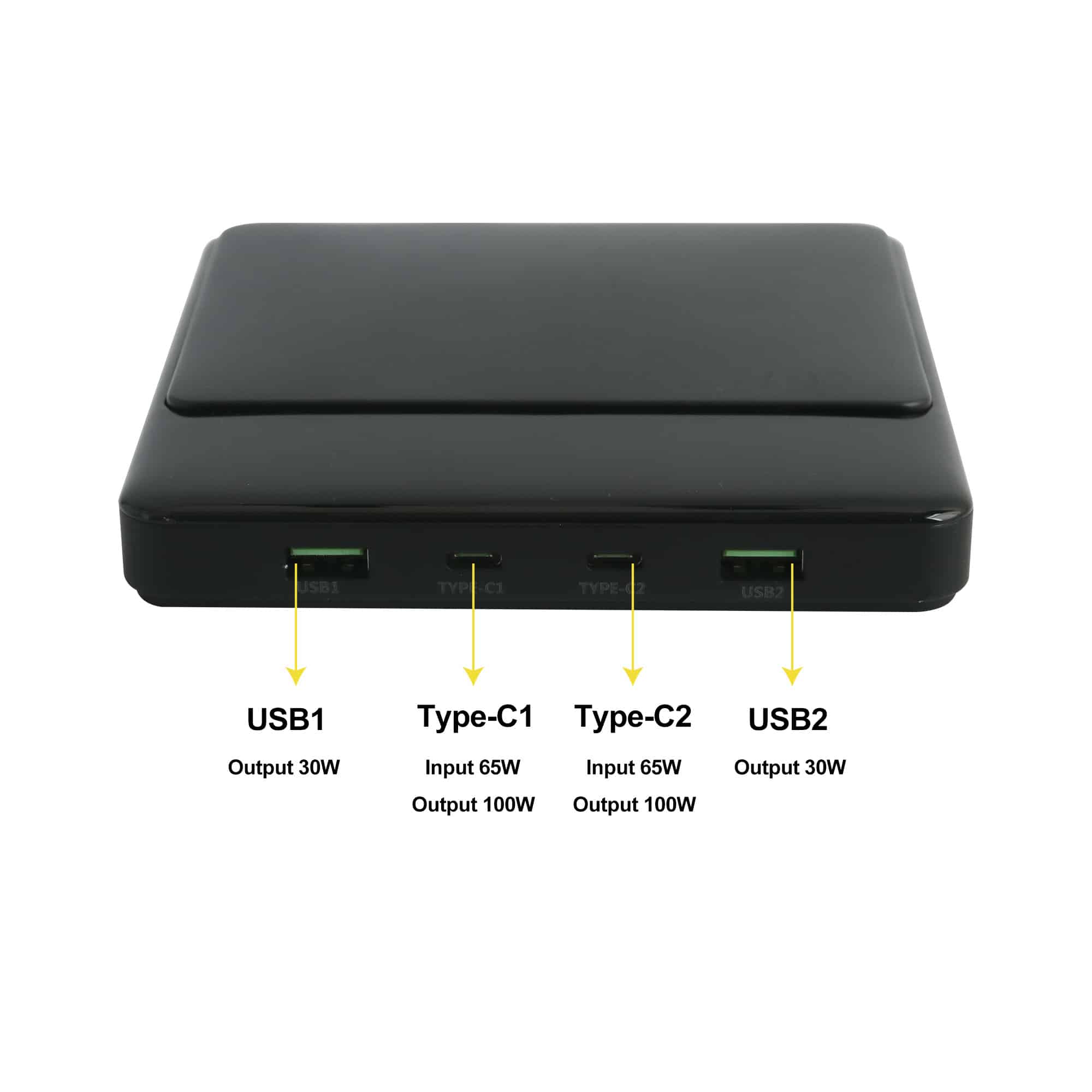 Type-C1/2: 5V/3A, 9V/3A, 12V/3A, 15V/3A, 20V/5A (100w)