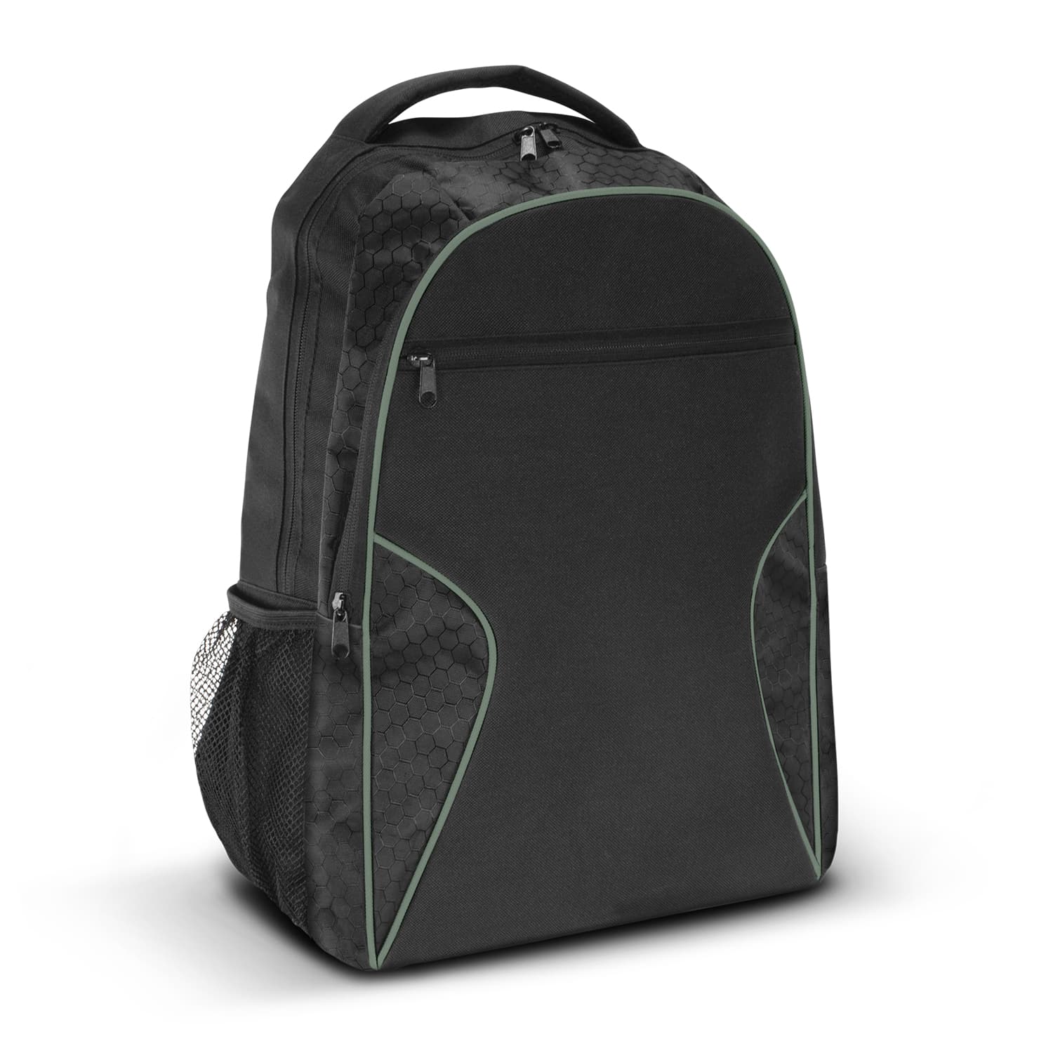 Backpack with two compartments which is manufactured from 600D polyester with decorative ripstop nylon accents and smart coloured piping. It has a padded back for comfortable carrying, padded woven shoulder straps which are adjustable and a fully padded internal laptop compartment. Other features include an internal pocket for a tablet, a zippered front pocket, a padded carry handle and two mesh side pockets.