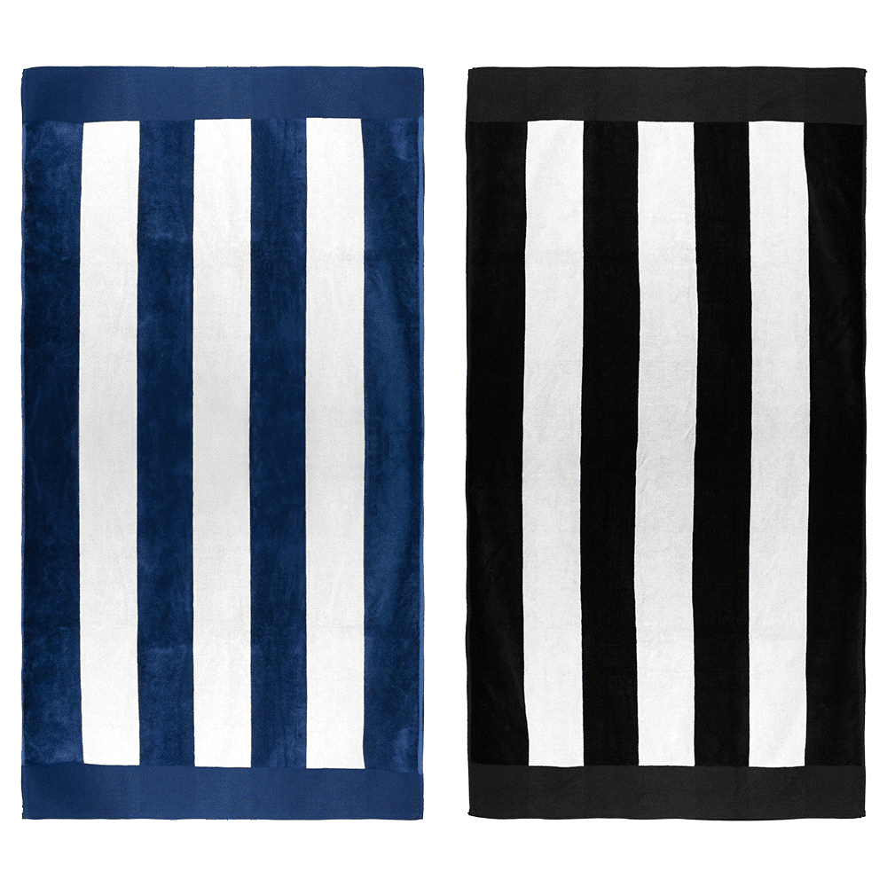Deluxe black and white jacquard beach towel made from 100% cotton and 500gsm velour one side and terry towelling on the other.