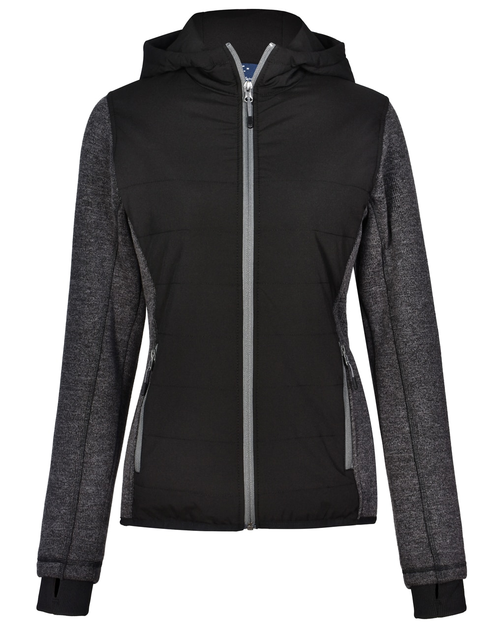 Description: Quilted Body Coral fleece inners and thumb hole features for added warmth. Front zipped pockets for storage and hand warmth. Quilted body has inner pocket for embroidery.