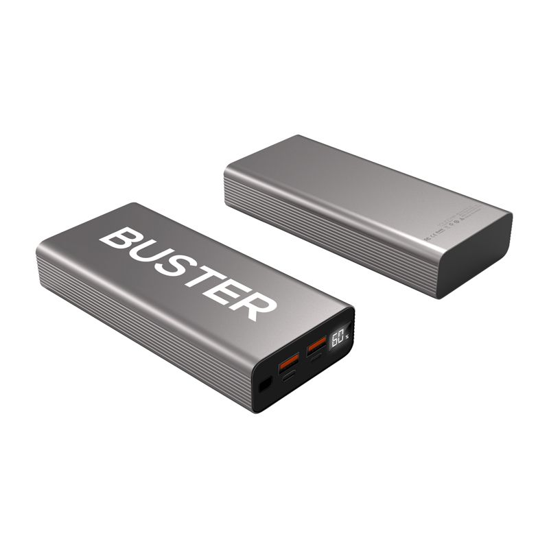The Fast Charge Buster power bank offers a whopping 20,000 mAh A Grade, Lithium-Polymer battery housed in a stylish aluminium case. The Buster provides both Type-C and Micro USB inputs and an easy to read LED indicator. It also offers Type-C and Dual USB outputs with built-in protection functions to stabilise the output voltage and prevent overcharging and short circuits. Suitable for charging smartphones, tablets and any 5 Volt device requiring a charging cable. Includes a Type-C charge cable and user manual. Material: Aluminium.
