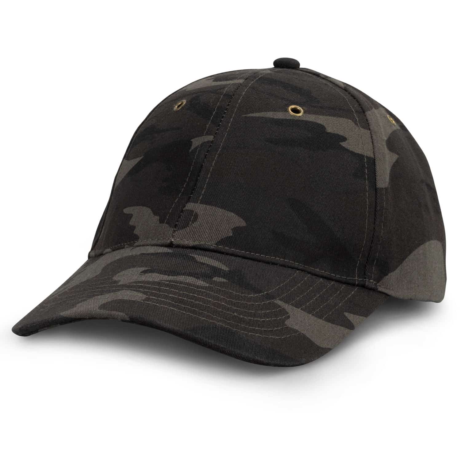 Premium 6-panel camouflage cap with a curved peak which is manufactured from 100% cotton and has a metal buckle for easy closure. This cap has metal eyelets and comes in one size fits most.