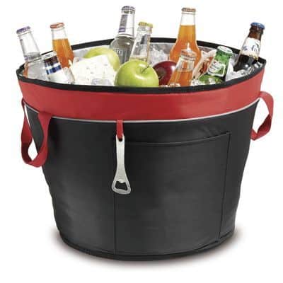 Ideal way to keep your drinks and snacks on ice for any occasion. Front pocket to hold small accessories. Comes with an attached bottle opener.