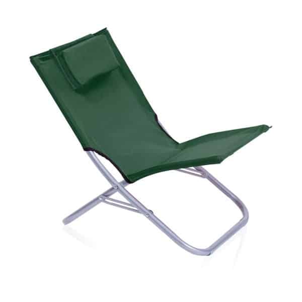Folding chair with resistant tubular metal body. In resistant 600D polyester with reinforced seams and built-in headrests in a wide range of bright tones. With non-slip rubber reinforcements on the legs.