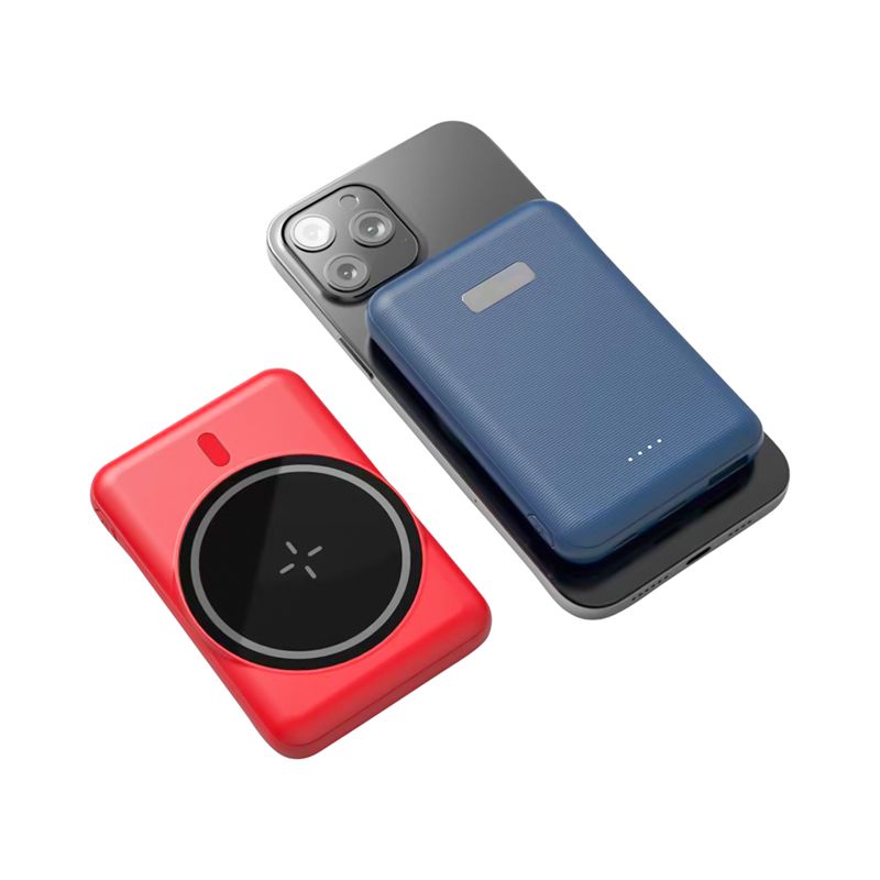 5000 mAh (18.5Wh) Lithium polymer battery. Micro USB and Type-C Input: 5V/2.1A (Max), USB-A and Type-C Output: 5V/2.4A, Wireless Charger Output: 5W. Battery Charge Time: 2-3 hours, Product Weight: 127g, Number of Device Charges: iPhone 13Pro (98%), iPad Air 4 (39%), Samsung S22 (82%), Charge Cycle > 500 times.
