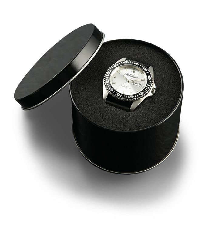 Round black metal tin