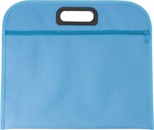 Polyester conference bag (600D), with integrated black plastic handle and matching zipper.