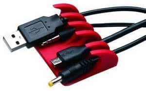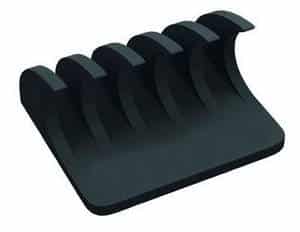 Keeps up to 5 cords or cables from tangling and falling to the floor. Made from soft, rubbery material (TPE) that will not damage cords. Low profile design keeps your desk organised. Attaches to desk, table, or counter top with adhesive foam.