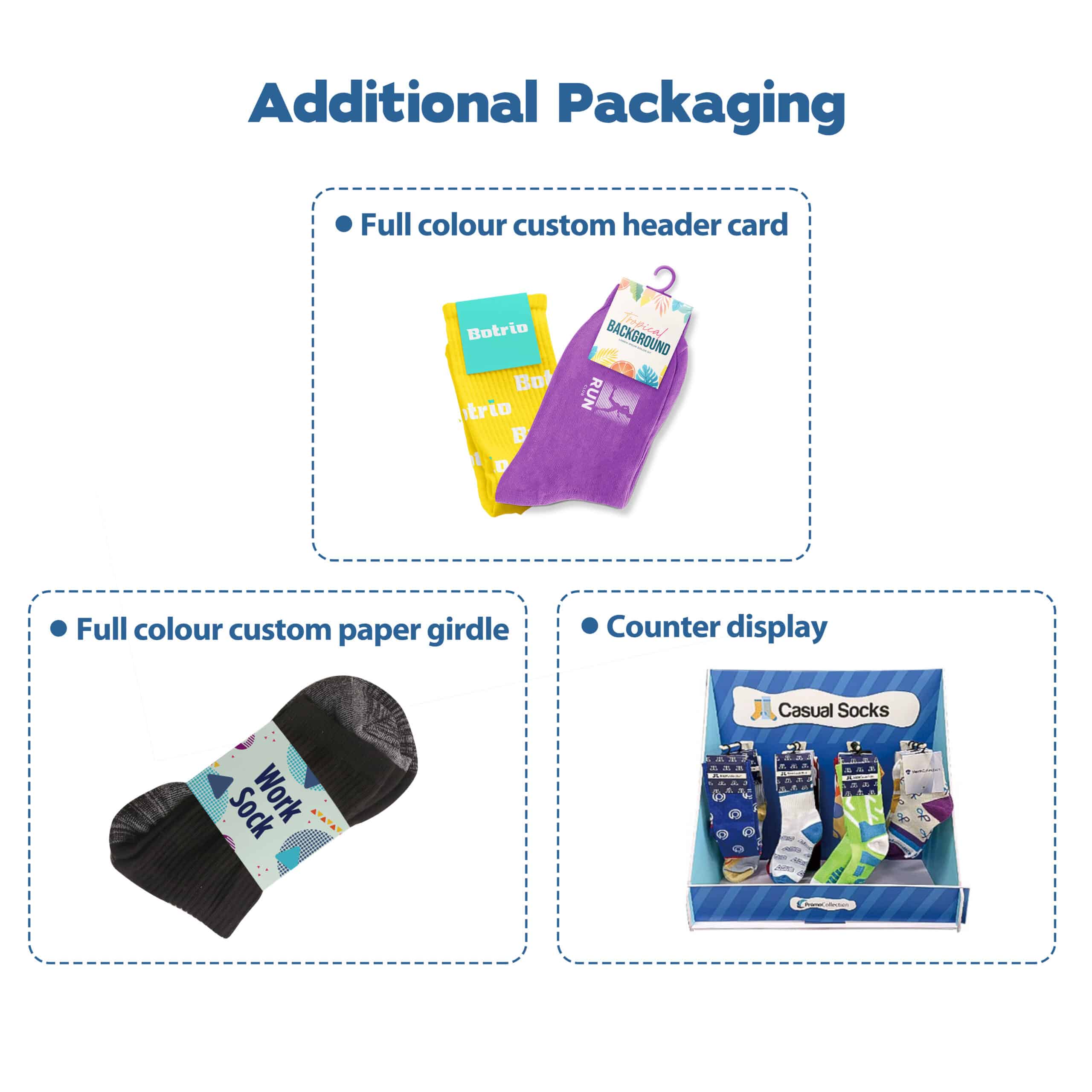 Create your own unique socks with our new Crew Woven Sport Socks! Made of cotton, polyester and spandex material, which is soft and breathable. With jacquard craft to highlight your design. Our sport crew socks are suitable for indoor or outdoor activities. Customized patterns on socks can enhance the effect of brand promotions. The pattern socks provide men and women with high quality, on trend, colourful and unique designs that add an element of individuality to an everyday wardrobe essential.