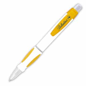 A click action ballpoint pen with a soft grip and black ink.