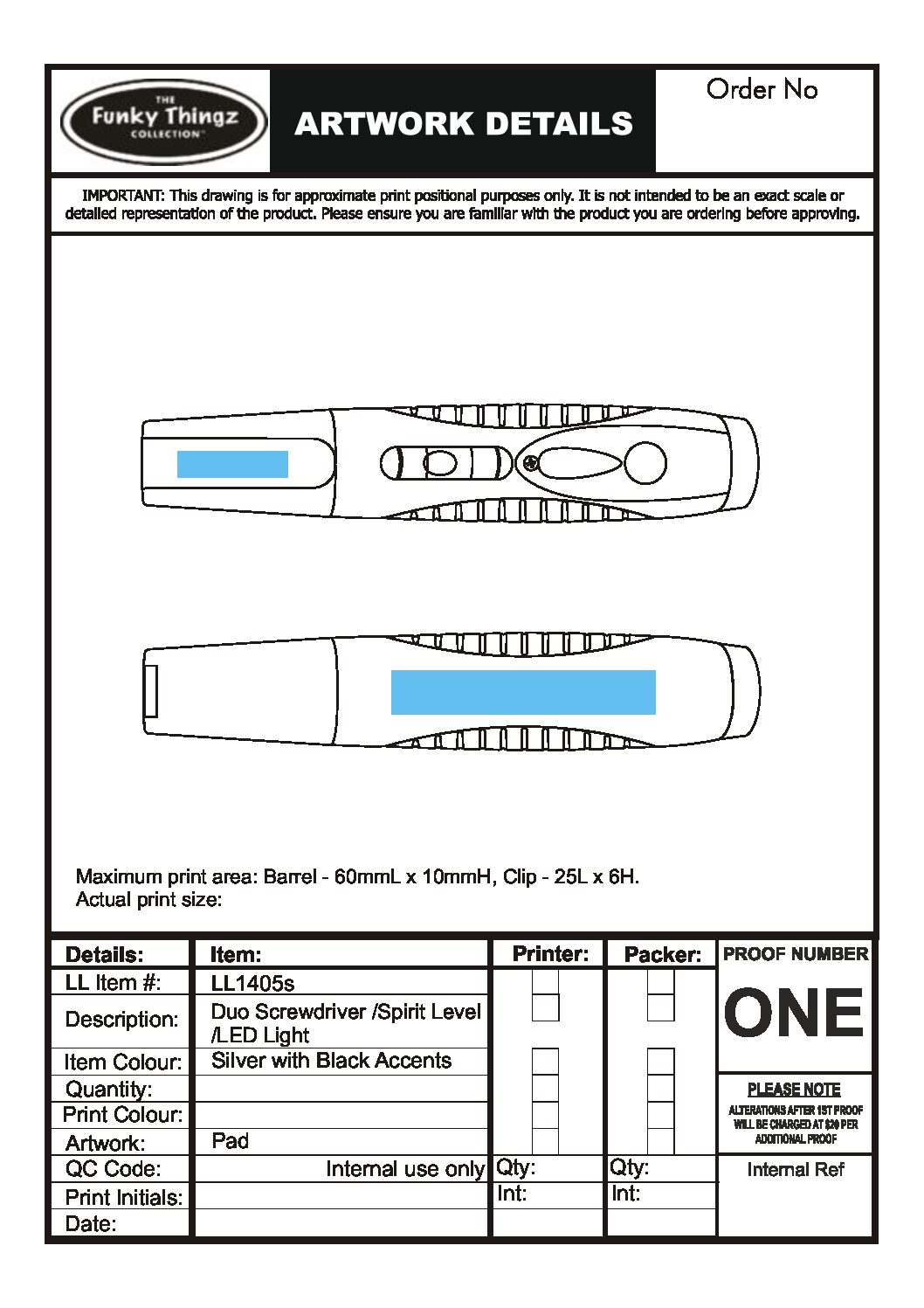 Print areas: BARREL - 60L x 10H, CLIP - 25L x 6H., CLIP - 25L x 6H.