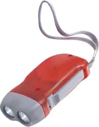 Dynamo self charging plastic torch with two LED lights. Batteries included. Patent: EU Nr. 363627-0002