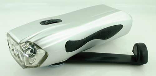 3 LED bulbs, rechargeable lithium battery, approx 1 minutes winding gives 30 minutes of light. Boxed.