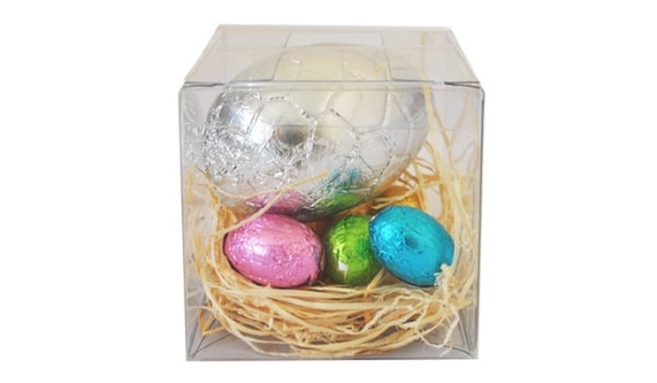 Type: Clear Cube filled with 1x 40gm & 8 mini eggs