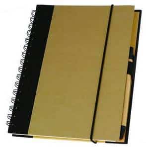 A5 size with 100 sheets wiro bound notebook. Pen and biodegradable trim.