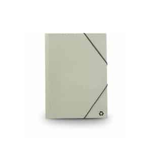 High-capacity ecological folder with elastic closure in flexible recycled cardboard and with tripe folding system.