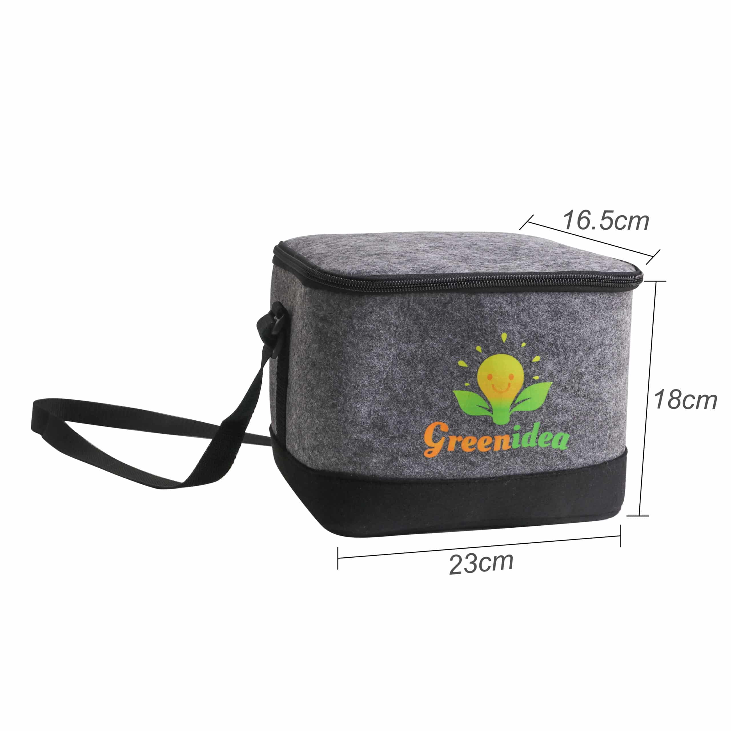 Keep your food and drinks fresh and cold with our new RPET Felt Material Cooler Bag! Made from RPET Felt material, which is eco-friendly. We will heat transfer to highlight your branding. With a handy carrying strap, this bag is easy to take with you wherever you go. Extra-large front zipper pocket for easy storage. This would be a perfect promotional gift, and would be useful for weekend picnics, backyard parties, beach trips, camping, and any fun indoor or outdoor activities. This stylish cooler bag offers a great branding opportunity for any business.
