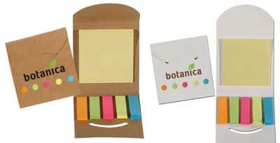 Folder made with recycled paper. 5 circular windows on cover. Includes 5 sets (25 each) of coloured 12.7W x 44.5L mm flag notes. 25 yellow sticky notes.