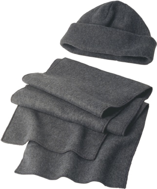 Fleece cap and scarf made from 100% polyester, 200 gr/m2.
