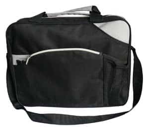 600D polyester two tone with adjustable and detachable shoulder strap, Carry handle, rear pocket, large main compartment with divider, front mesh pocket and zipper compartment