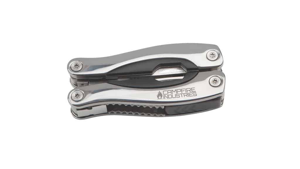 This 13-function multi tool is without doubt ‘top of the range’. With high-gloss stainless steel handle and implements, Hercules Pro features a secure internal spring as well as a safety implement locking device that ensures the knife, screwdrivers etc. will remain extended until the unlock button is pressed. Available in gloss stainless steel with black trim and supplied in a deluxe nylon pouch.