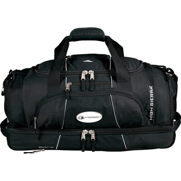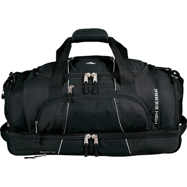 Elastic mesh side pocket with hook and loop closure. Water bottle pocket and D-ring hook on end. Pocket for portable music player with headphone port. Drop pocket for items such as sport goggles and sunglasses. Hidden backpack straps with Vapel™ mesh padding are stored behind bottom panel. Detachable, adjustable shoulder strap with Vapel™ mesh padding and suspension system. Neoprene handle wrap wicks away hand moisture. Vapel™ mesh grab handles on each end.