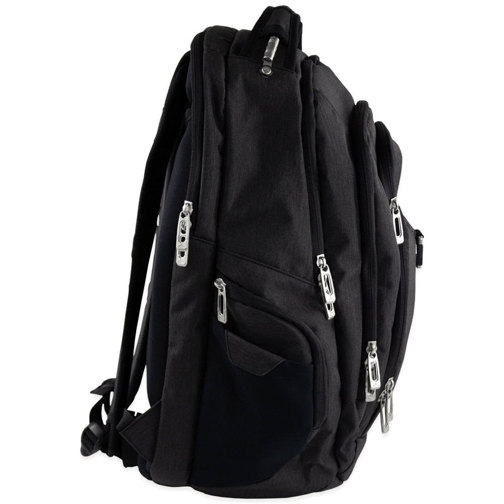 The High Sierra Elite Eco RPET 17” backpack features a padded, lined, and dedicated compartment to protect your 17-inch laptop. The main compartment has a huge capacity and includes a padded and dedicated tablet sleeve, a lined valuables pocket, and a front zippered compartment with an organisational panel and a key fob.