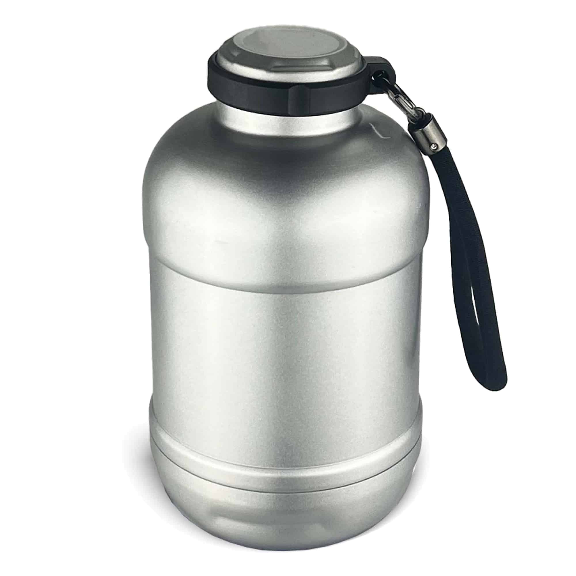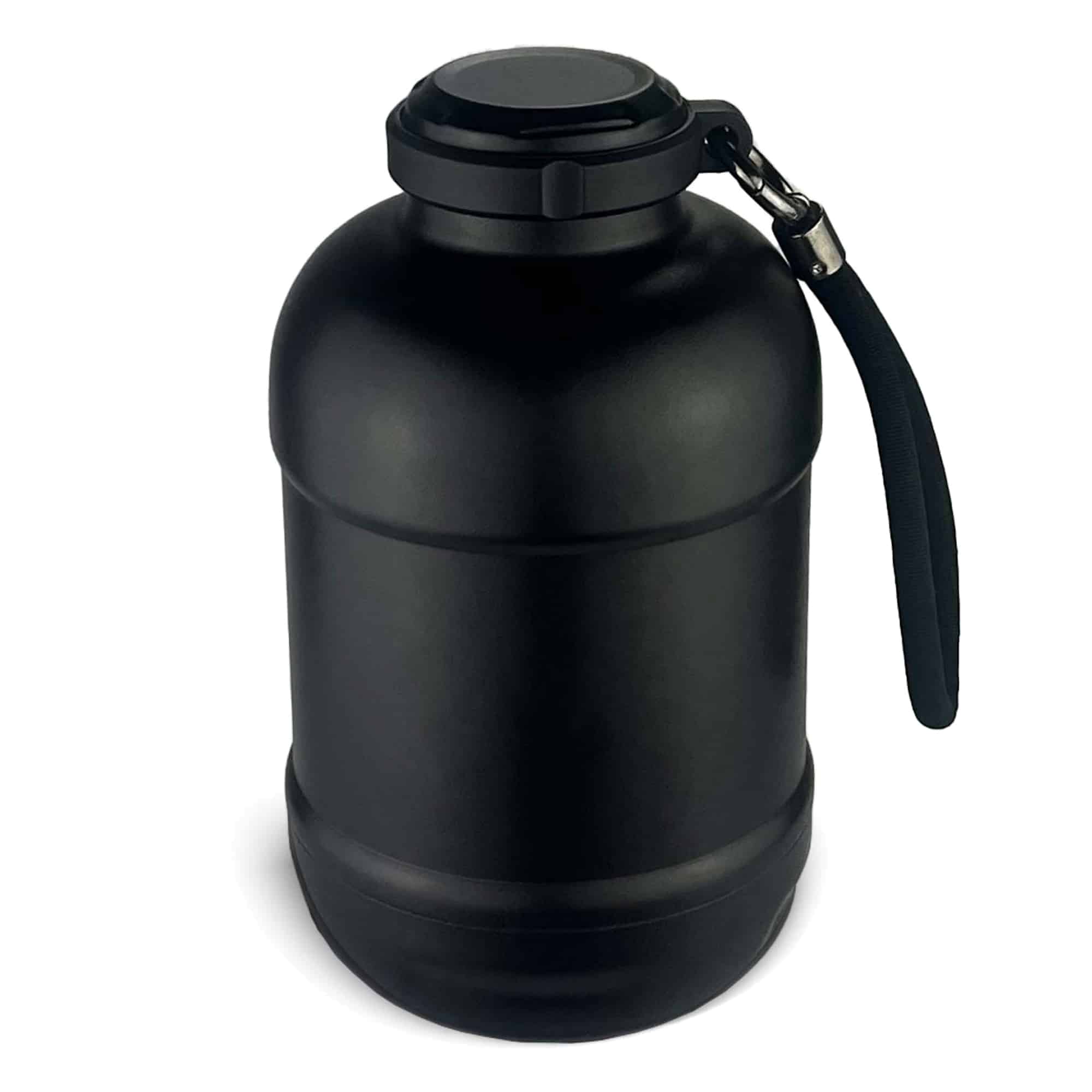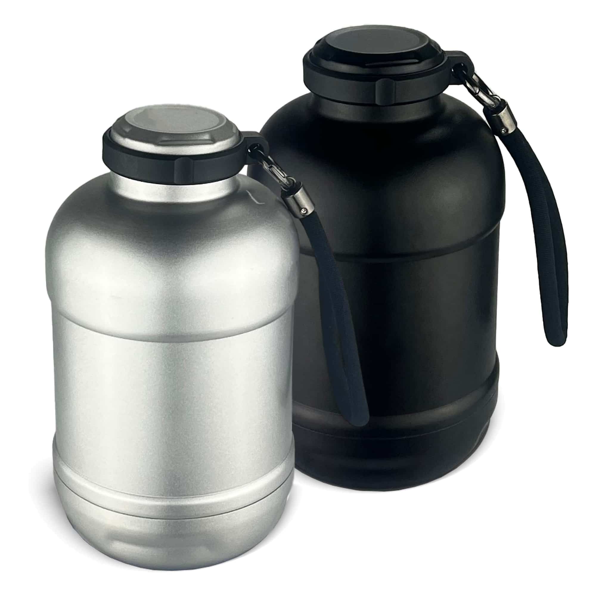 The 685ml water bottle combines durability with bold design, featuring a screw-on lid, black ribbon handle, and non-slip base. Made from food-grade 304 stainless steel, it keeps drinks cold for 18 hours. Available in black or silver, it’s perfect for showcasing your branding. Presented in a natural kraft paper gift box.