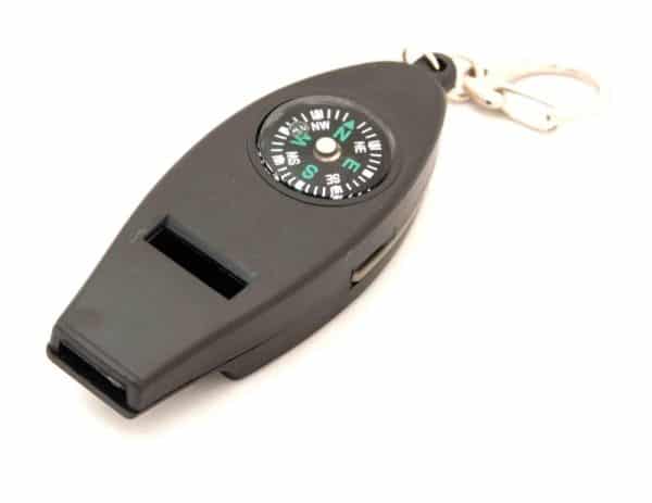 Keyring with thermometer, compass and whistle