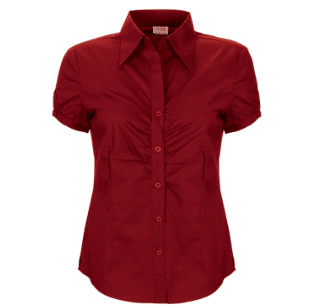 Modern Fit. Cotton rich plus with the added comfort of spandex. Tailored contemporary fit. Gathered bust detail. Ideal for corporate uniforms, hospitality, all business applications.