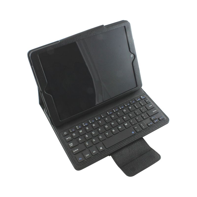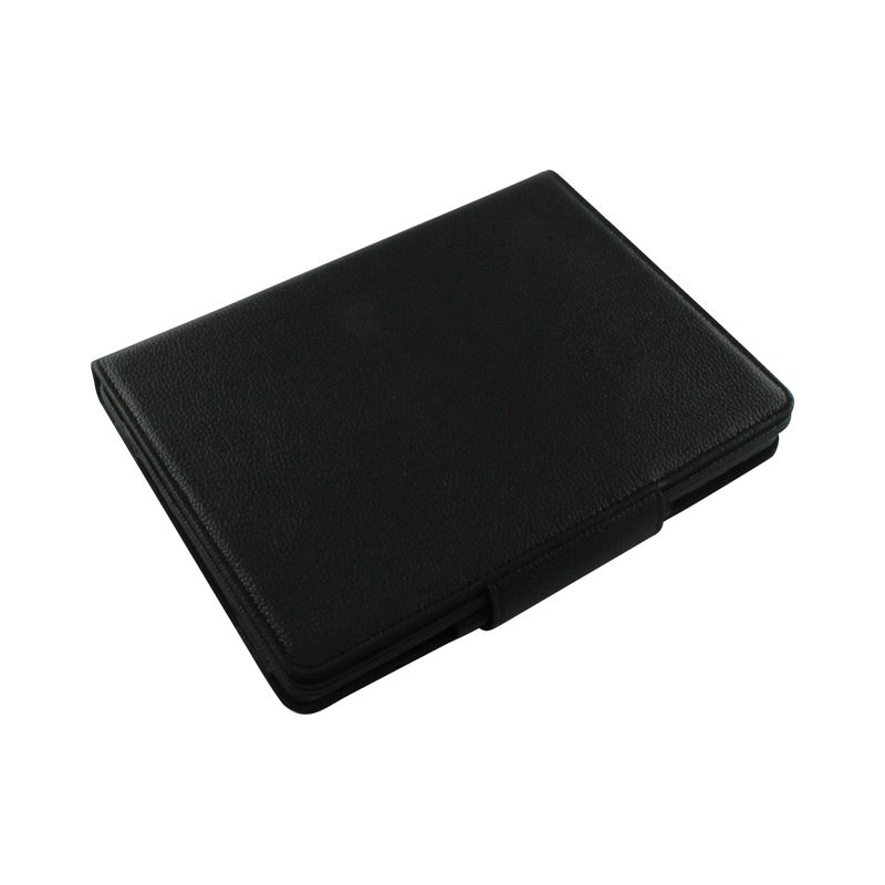 PU Leather compendium with Bluetooth keyboard. The silicon keyboard design is silent, waterproof and offers an energy saving mode. The compendium includes built-in rechargeable Lithium battery, cable and instructions. (iPad not included)