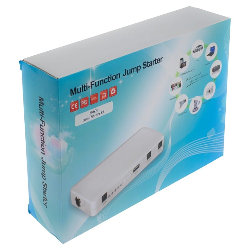Emergency Jump Start car kit provides a high capacity, A Grade 12,000 mAh Lithium polymer battery and a complete set of accessories all packed in compact PU leather zippered case. The powerbank provides USB output, LED Torch, LED charge indicator 0-99% and protection circuitry to stabilise the output voltage, prevent over charging and short circuit while the accessories include car battery clamps, USB charge cable with adaptors, notebook adaptor plugs, AC adaptor, In-Car charger and user manual. Suitable for charging; cars, notebooks, tablets, smartphones and most USB powered devices.
