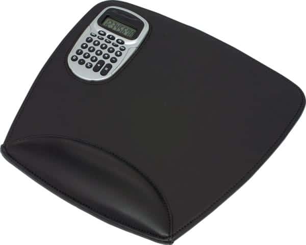 Leather look & feel, removable 8-digit calculator with a wrist rest. Boxed.