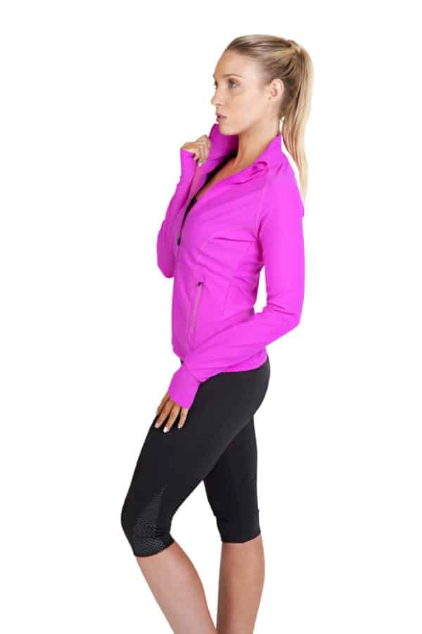 300gsm• 85% nylon, 15% spandex• very strong stretch and slim fit• zip through• side pocket with zipped.
