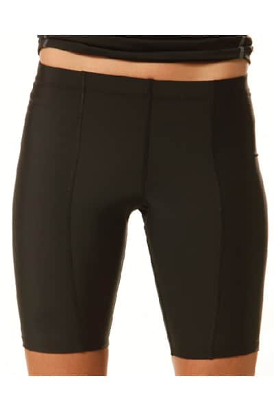 E-Performance Wear function fabric, 84% Nylon 16% Elastane knit. Self colour cover stitch on panel line. Elastic waistband. Double needle hemmed bottom.