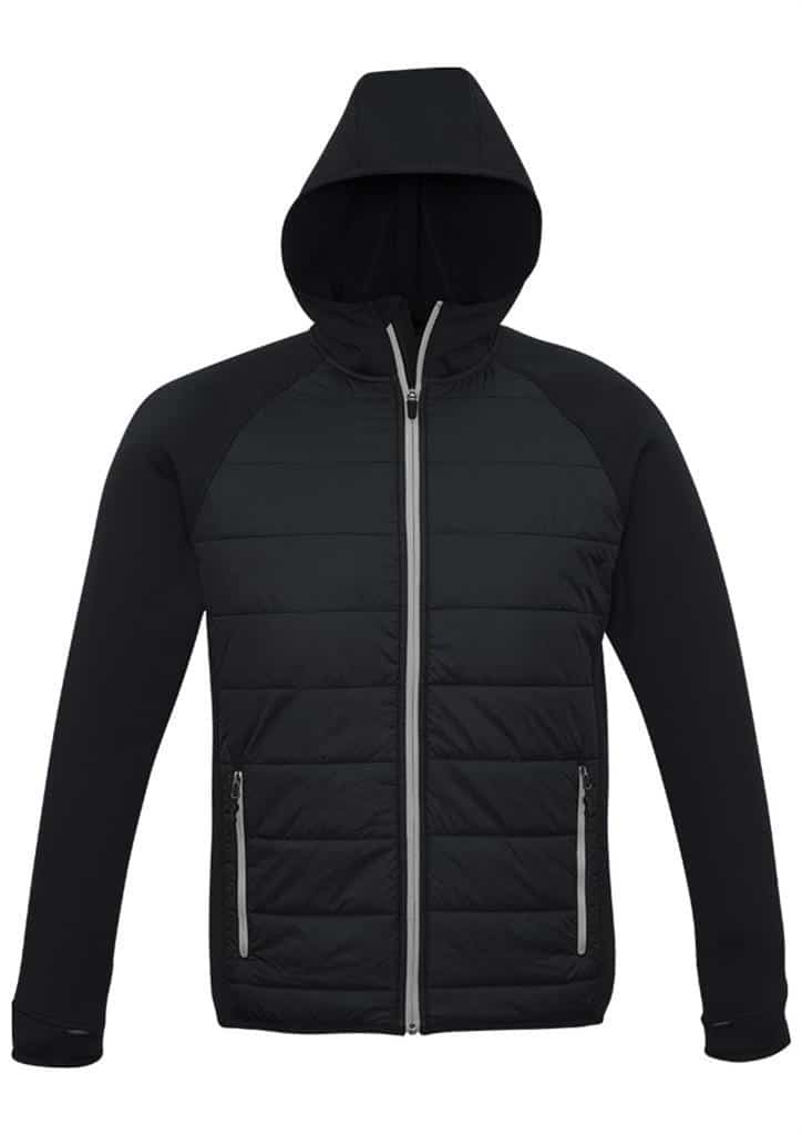 Power up your look with this hybrid hooded jacket that provides excellent warmth, flexibility and style for any cold-weather activity. Quilted, lightweight insulation on the front keeps your core warm while sleeves and back feature a stretch fabric for ultimate comfort and movement freedom.