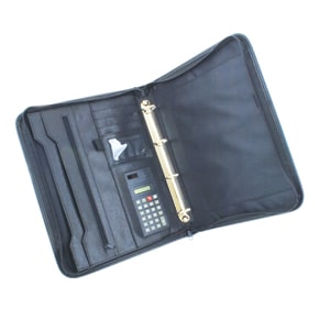Zip ring compendium, split leather, bonded leather or PU options, choice of ring style and removable.