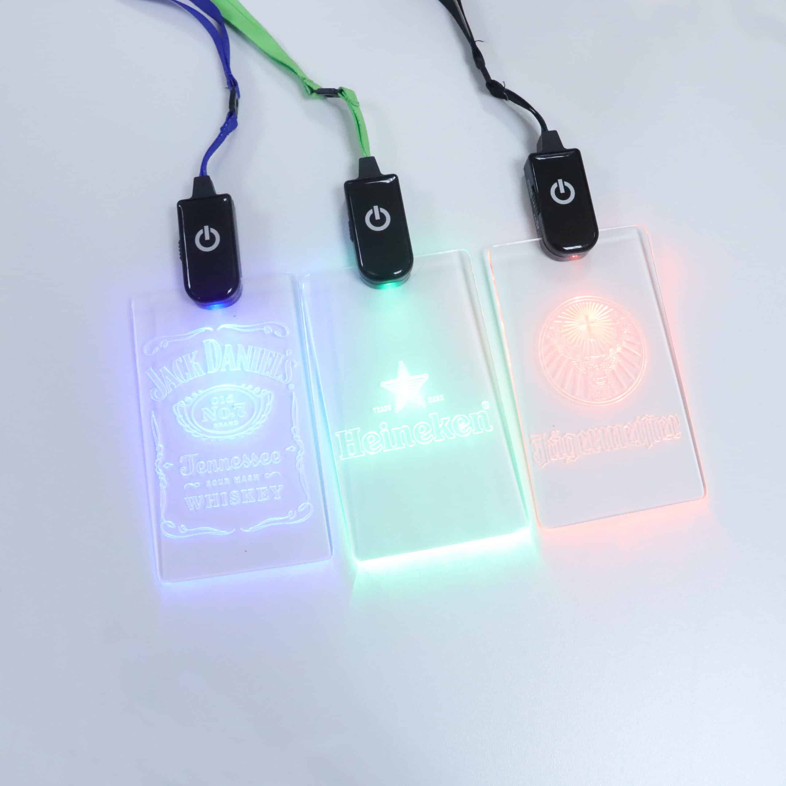 A lanyard that lights up is perfect for festival and events. Available in Red, Blue, Pink, Orange, White and Green. Great laser engraving can be used to customise the badges, and you can also choose to add a customized sticker on the battery case. Offering a long lasting battery to keep you illuminated for longer. Comes with a regular soft lanyard cable.