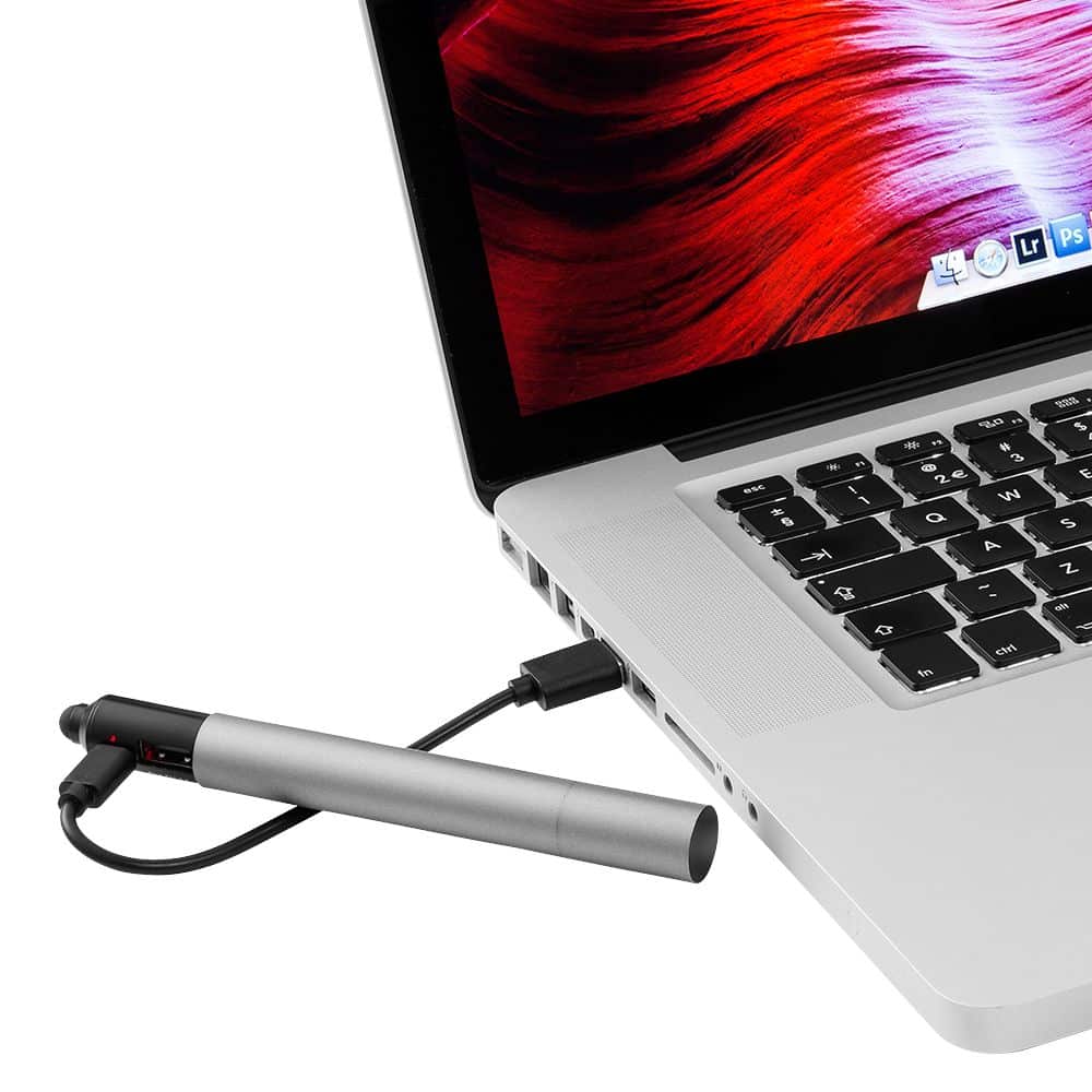 A perfectly compact synergy of electronic and traditional essentials, the Marksman Voyager powerbank stylus pen is an ABS/metal ballpoint pen that uniquely incorporates both a high-sensitivity touch screen stylus and a super-handy powerbank. Ingeniously saving space through its 3-in-1 functionality, this little gem can also save the day when mobile device batteries run down while on-the-go.