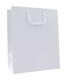 Medium white Gloss Laminated paper bags with matching PP rope handles.