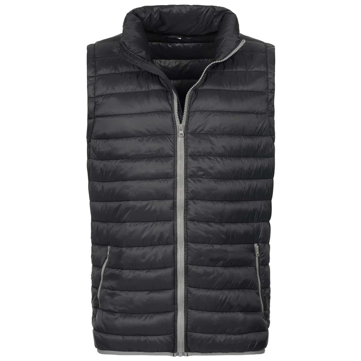 This lightweight padded vest for men, with a glossy nylon shell and polyester filling offers excellent heat insulation and great outdoor features like a stand-up collar with built-in hood, contrast zippers and polyester bindings.