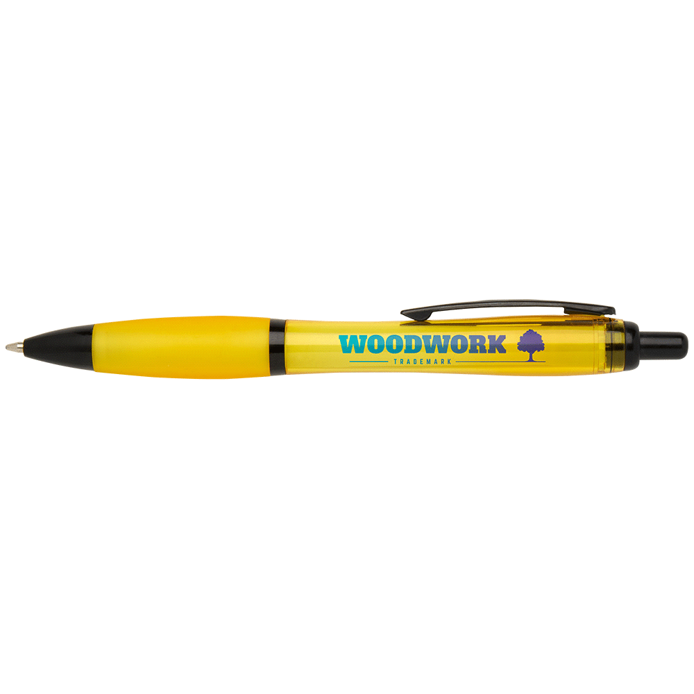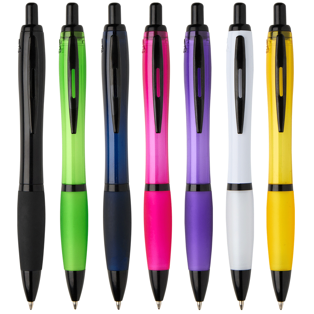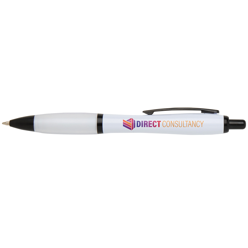The Nash black edition ballpoint pen has a stylish curvy design with black trims, and is made from RCS certified recycled plastic, reducing the need for virgin materials. Thanks to the fast click action mechanism, the ballpoint pen is quick to use and has a soft grip, which reduces any tension on the writing surface.