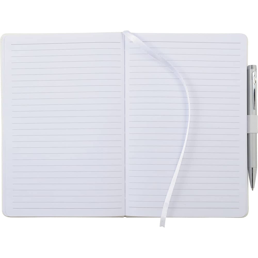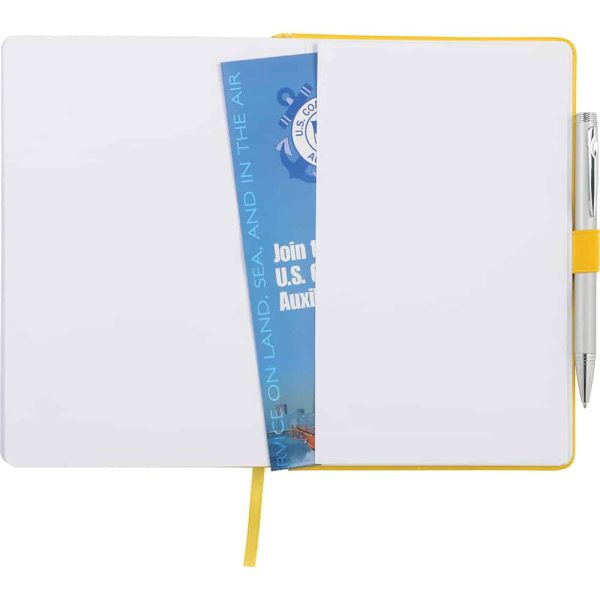 Features Satin ribbon bookmark, elastic privacy closure, expandable accordion pocket paper pocket in back, pen loop and thread-sewn book binding. Pen not included.