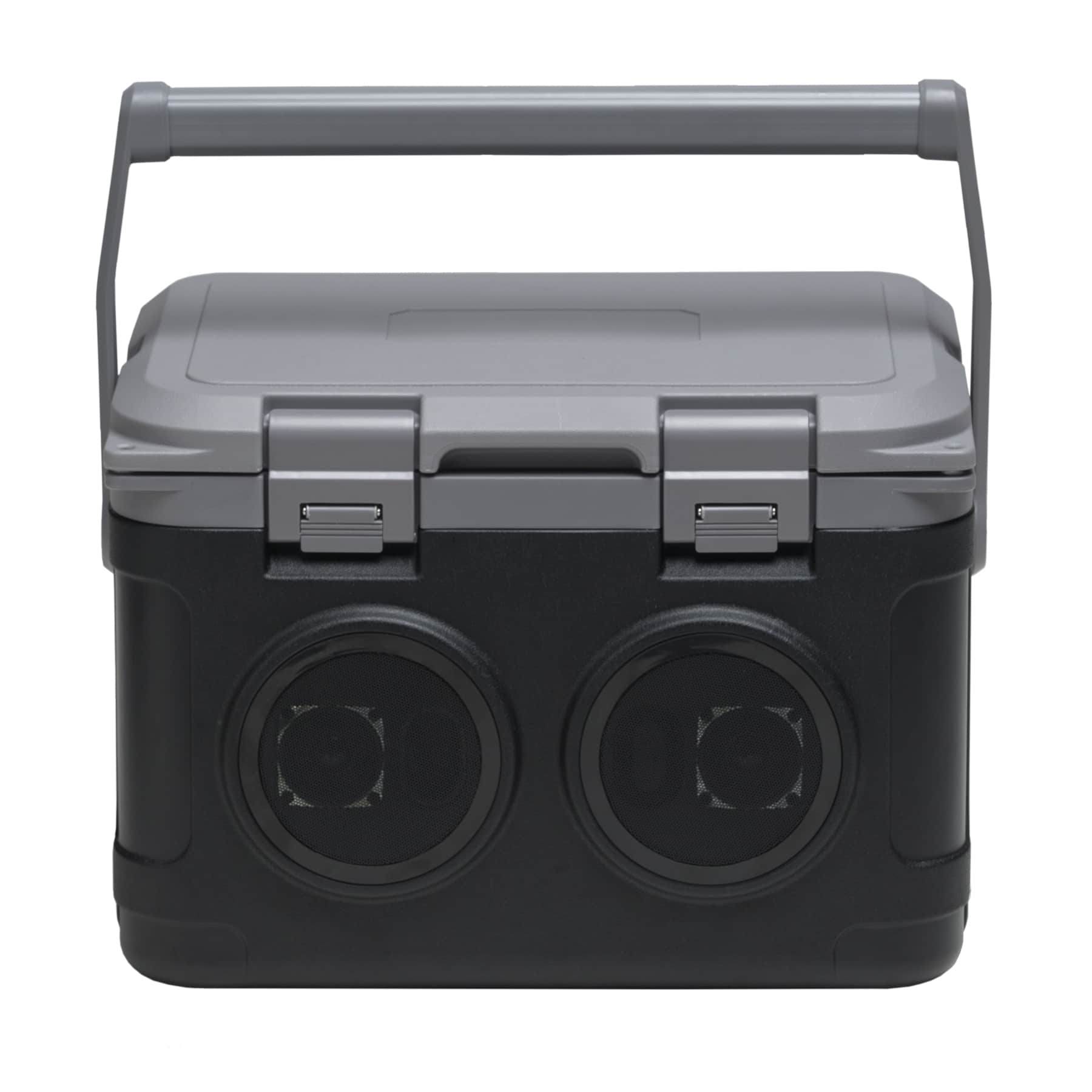 Double hinged lid secured with dual latches