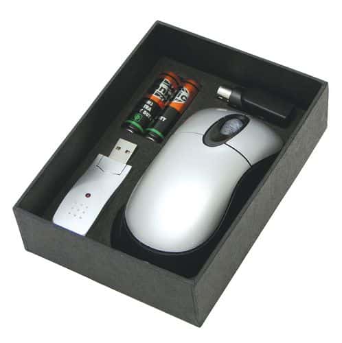 Optical wireless mouse with movable 1.1 receiver, includes 2 x AAA batteries. Boxed.