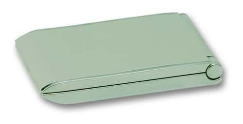 Slim line satin silver pocket calculator with world times, calendar, timer, alarm & clock functions, metal. Boxed.