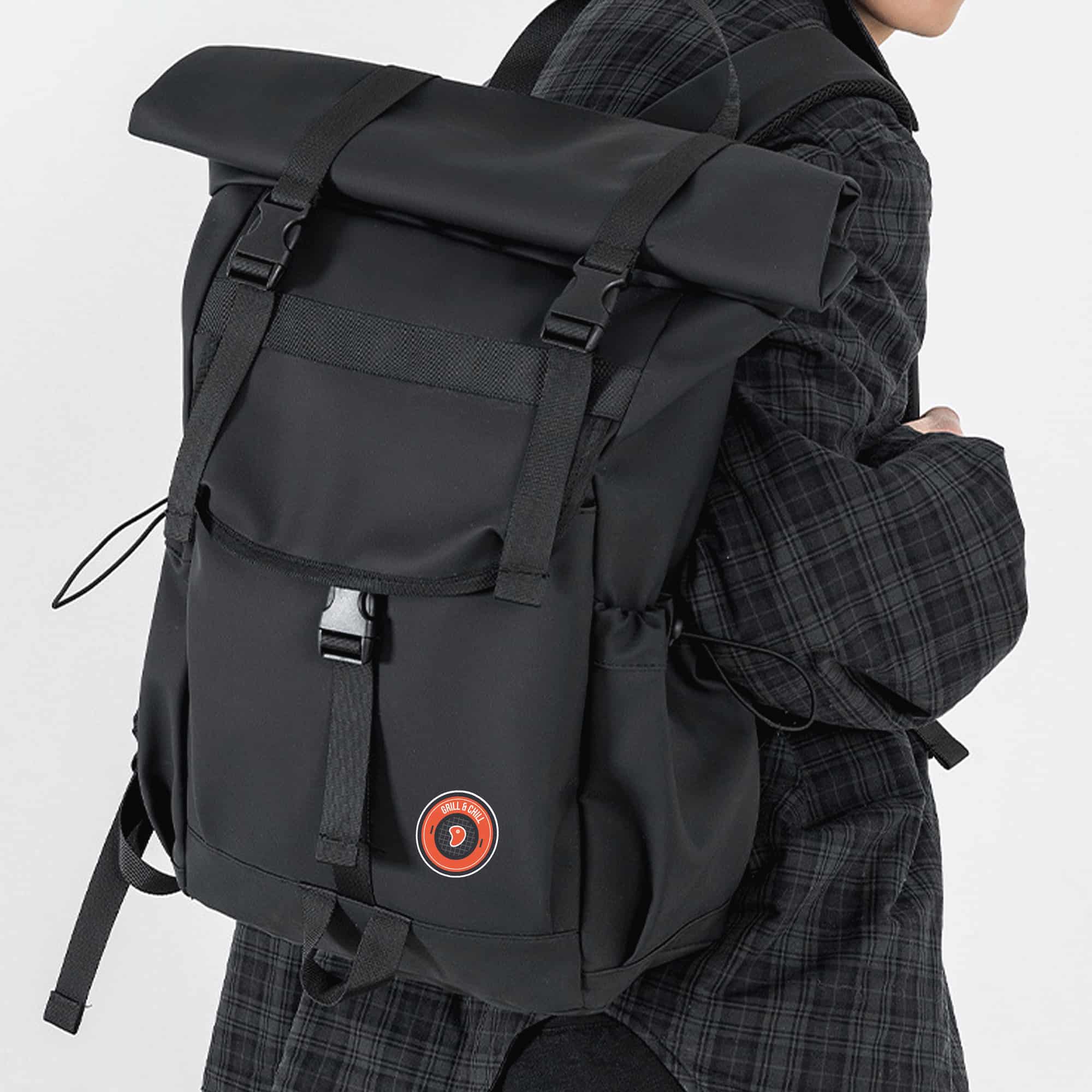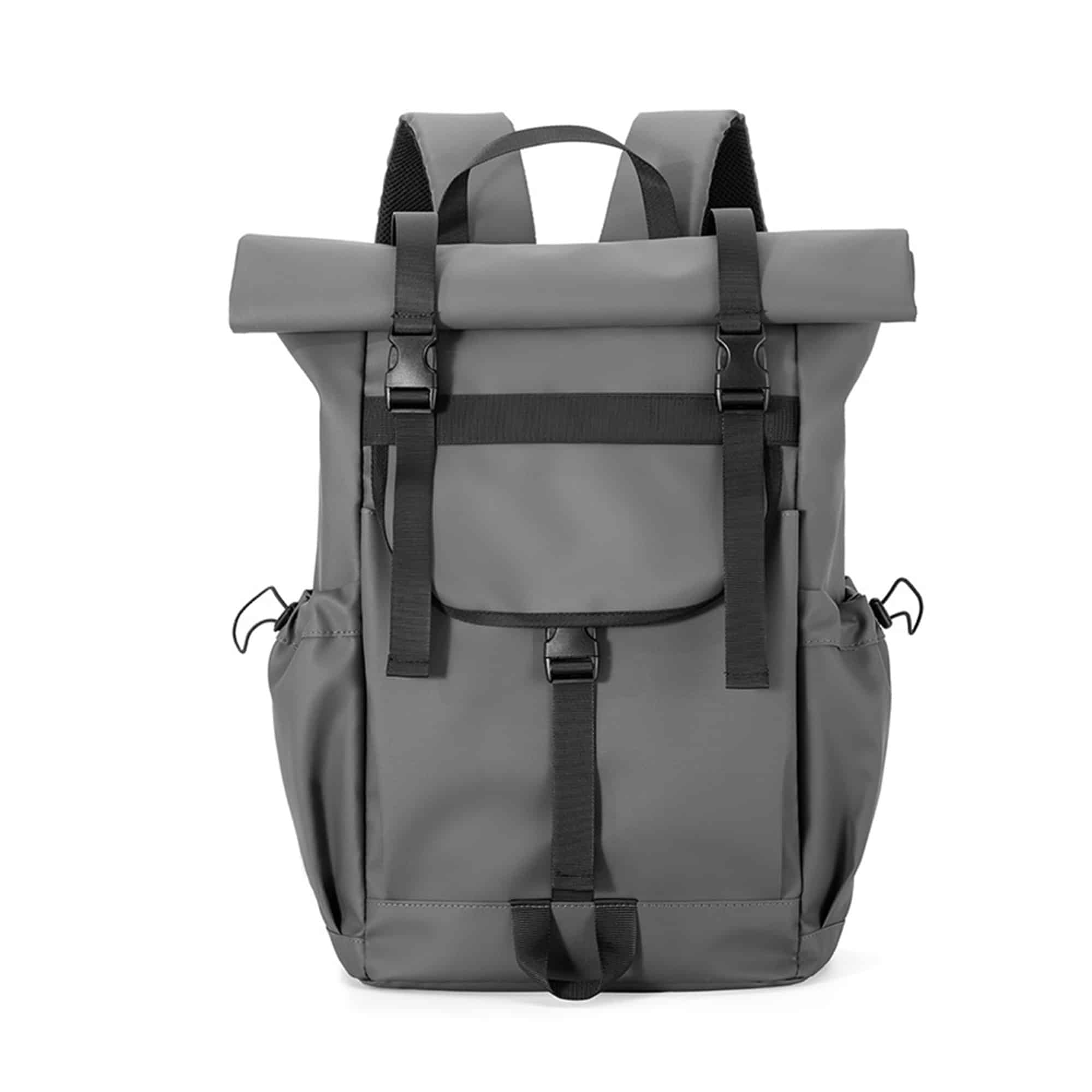 This stylish Polyurethane Roll Top Backpack can conveniently adjust its capacity, and fits up to your 15″ laptop, featuring a front zipper pocket for essentials, 2 side adjustable pockets for bottles, a belt on the back for suitcase fastening and a main zipper pocket. Our fashion backpack is made of polyurethane, that is water resistant and durable. With full colour heat transfer to showcase your design, you can choose from 2 colours, black and grey.