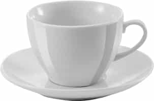 Super white porcelain cup and saucer (230ml)(price per piece, sold per 36 pieces).